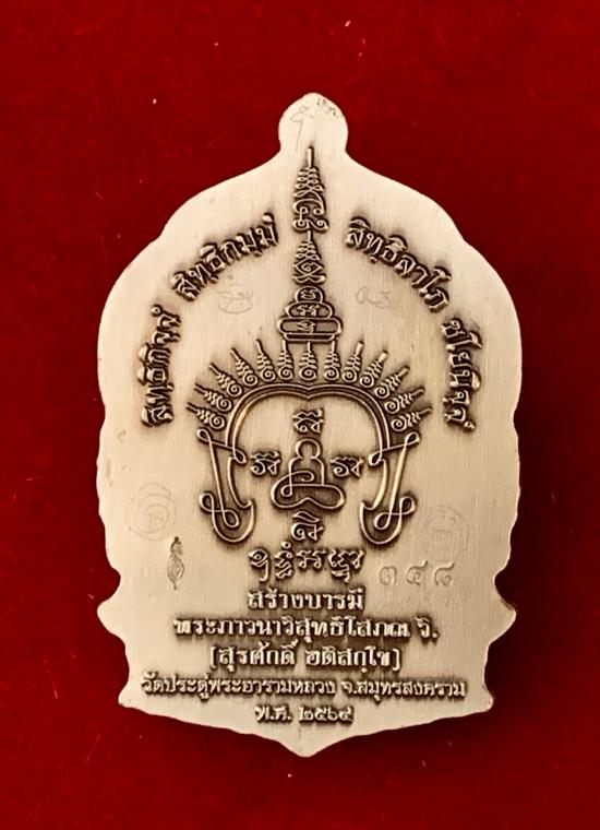 เหรียญนั่งพานสร้างบารมี พระมหาสุรศักดิ์ เนื้ออัลปาก้าซาตินมีจาร |