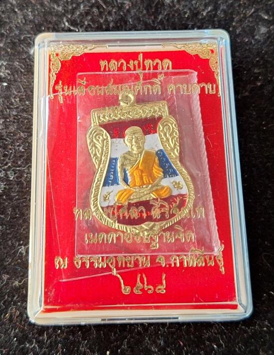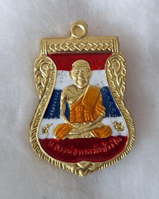 วัดใจ หลวงปู่ทวด หลวงปู่ศิลา เมตตาอธิษฐานจิต รุ่นเลื่อนสมณศักดิ์ เหนือดวง เนื้อทองทิพย์ ลงยาลายธงชาติ No.413 |