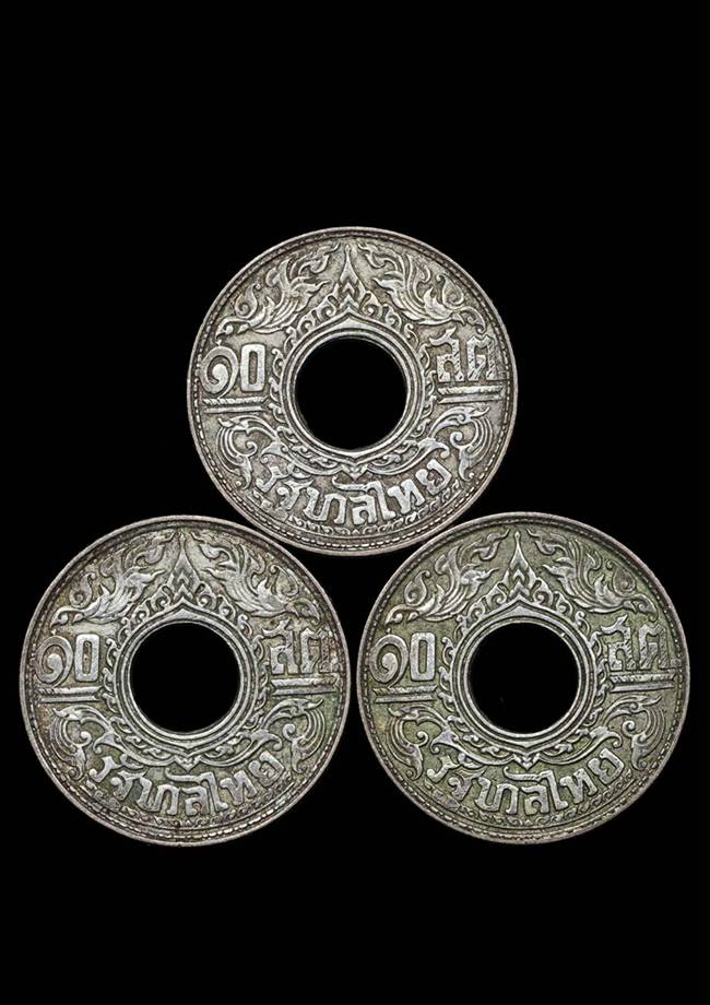 10 สตางค์ เนื้อเงิน จำนวน 3 เหรียญ