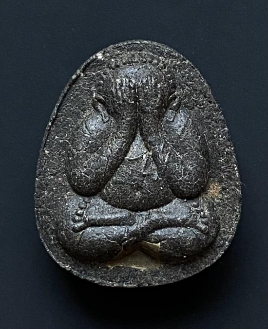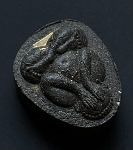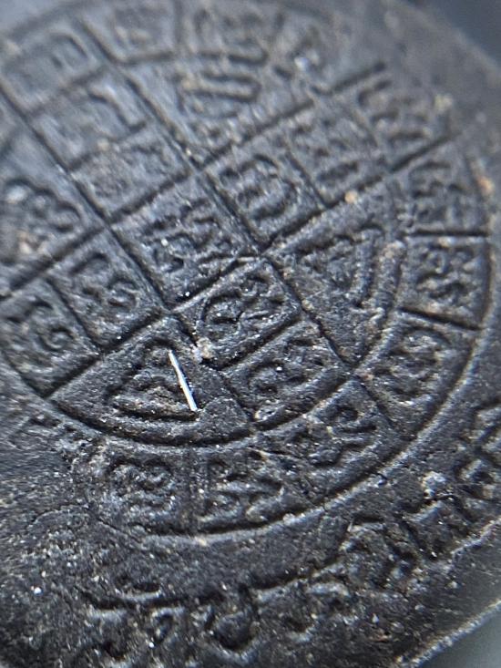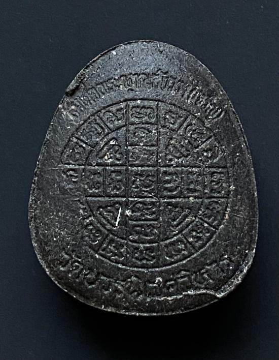 พระปิดตายันต์ดวงเล็ก ปี2523 สมเด็จพระญาณสังวร (เจริญ) วัดบวรนิเวศ_(เนื้อผงใบลานดำปลดหนี้)_มีเส้นเกศา_