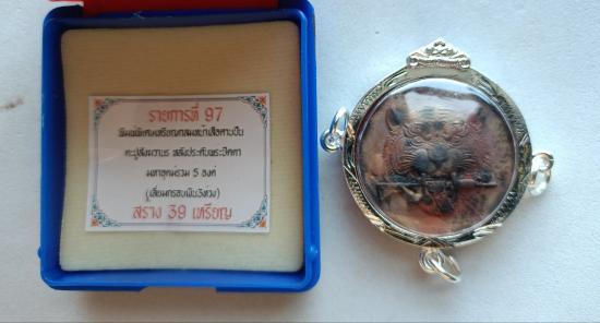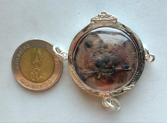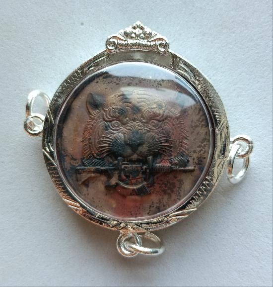 วัดใจเคาะเดียวแดงจ้า เหรียญหน้าเสือ รุ่น9แซะ หลวงปู่อิ่ม วัดทุ่งนาใหม่ เนื้อตะปูส ังฆวานร หลังพระปิดตา5องค์ หมายเลข6 เลี่ยมกรอบชุบเงิน เลี่ยม3ห่วง เคาะเดียวแดงจ้า