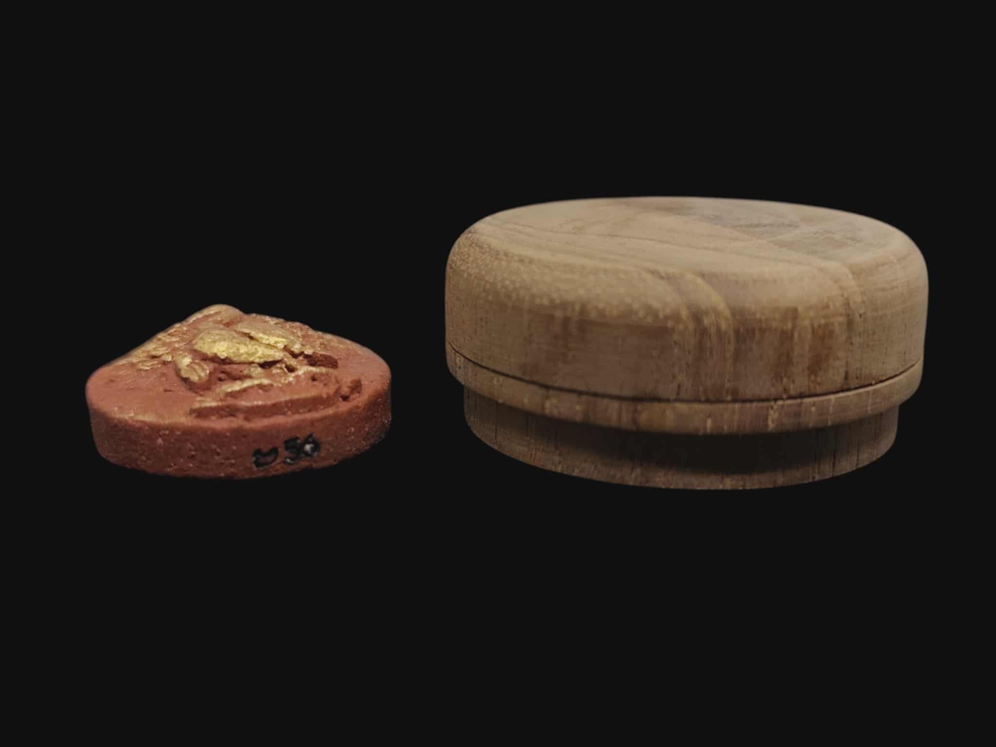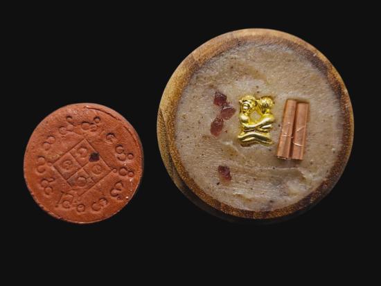 เคาะเดียวแดง พญายูงคำ รุ่นแรก เนื้อผงชาดปัดทอง และ ตลับไม้สีผึ้งเนื้อหอม รังผึ้งร้าง ขวางเดือนขวางตะวัน รุ่นแรก ฝังอิ่น ตะกรุด ในเมตตาบารมี เจ้าปู่จั่นต่า กาวิสาละ ครูบากฤษดา เมตตาเษก |