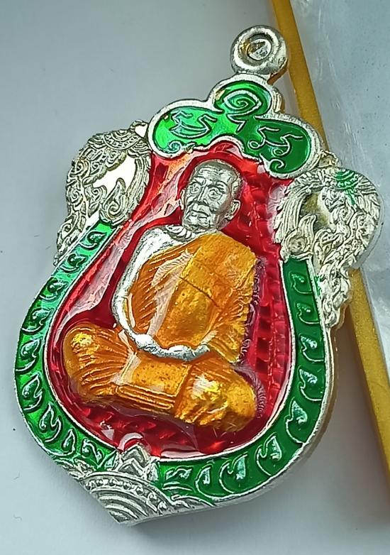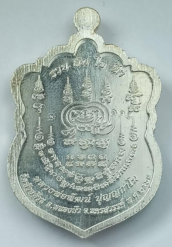 เหรียญเสมา "รวยสมใจนึก" หลวงพ่อพัฒน์ วัดห้วยด้วน เนื้อเงินลงยาขุ้ยพื้น เบอร์ 130 พร้อมกล่องเดิมครับ (เหรียญหนัก 17.79 กรัม)