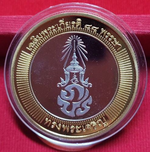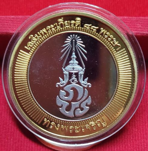 เหรียญที่ระลึกเฉลิมพระเกียรติ ในหลวงรัชกาลที่ 9 พระชนมพรรษา 88 พรรษา พ.ศ.2558 เนื้อเงินขัดเงาเคลือบทองคำแท้บางส่วน เหรียญขนาดใหญ่