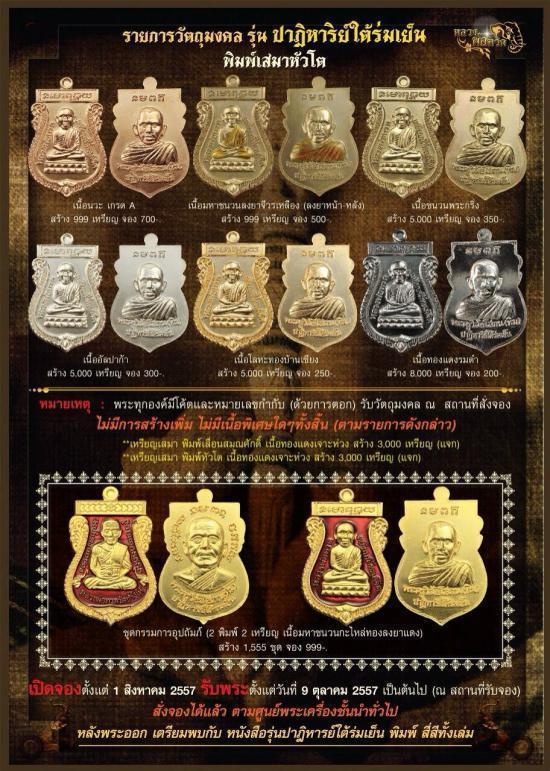 แบ่งปันเหรียญหลวงปู่ทวดเหยียบน้ำทะเลจืด หลังหลวงปู่ทิม พิมพ์เสมาเศียรโต รุ่นปาฏิหารใต้ร่มเย็น วัดพังเถียะ (วัดตำนานหลวงพ่อทวด - อาจารย์ทิม) ชุด5องค์ เนื้อชนวนพระกริ่งไม่มีกล่อง สร้าง5000องค์ ราคาจององ |