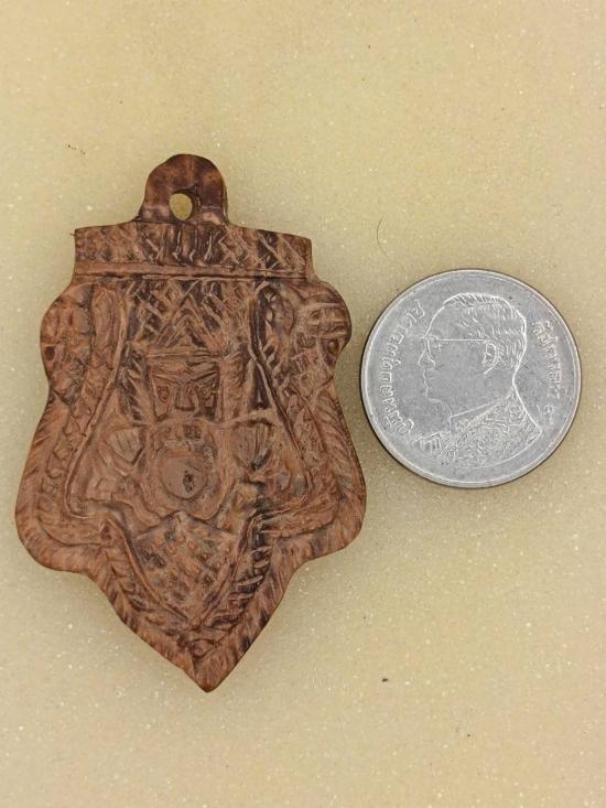 เคาะเดียว ไม่แพง พระราหูแกะจากกะลาเผือก ด้านหลังมีรอยจารเต็ม ไม่ทราบที่ ไม่ทราบเกจิครับ |