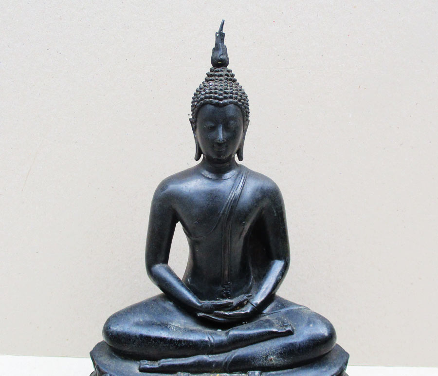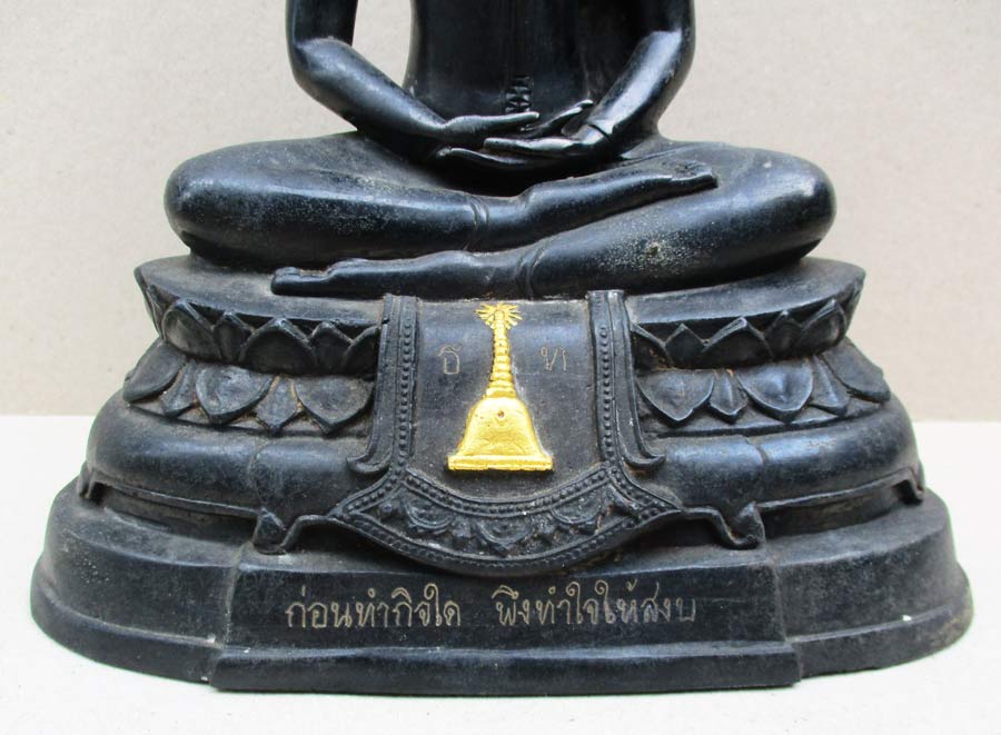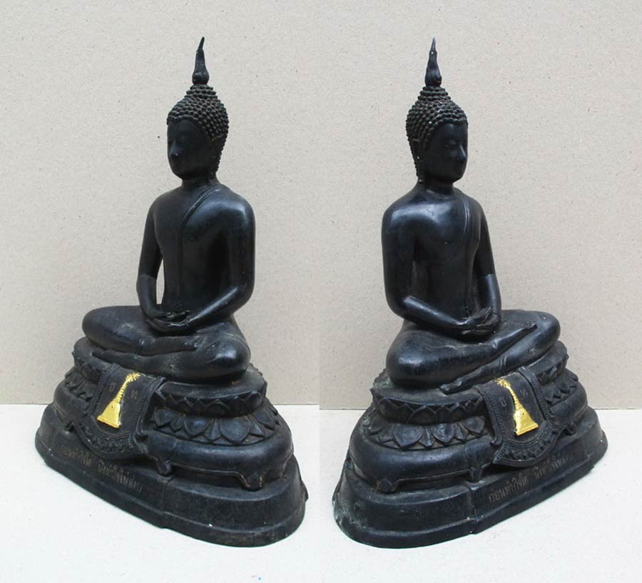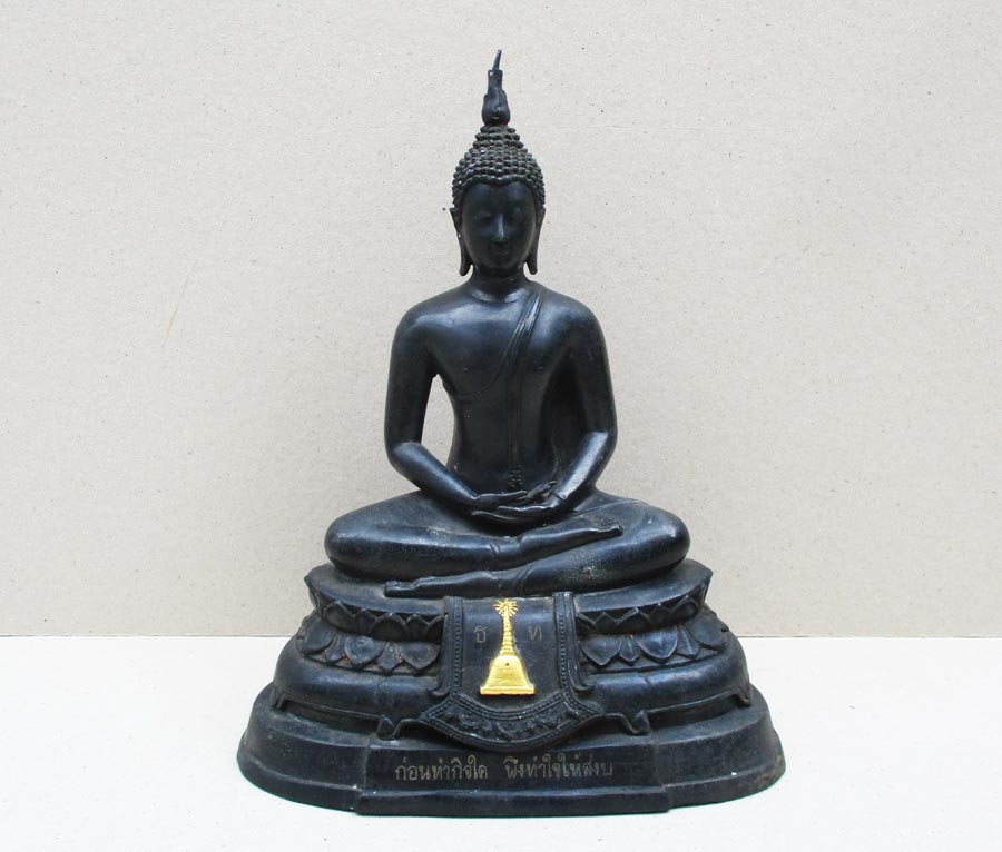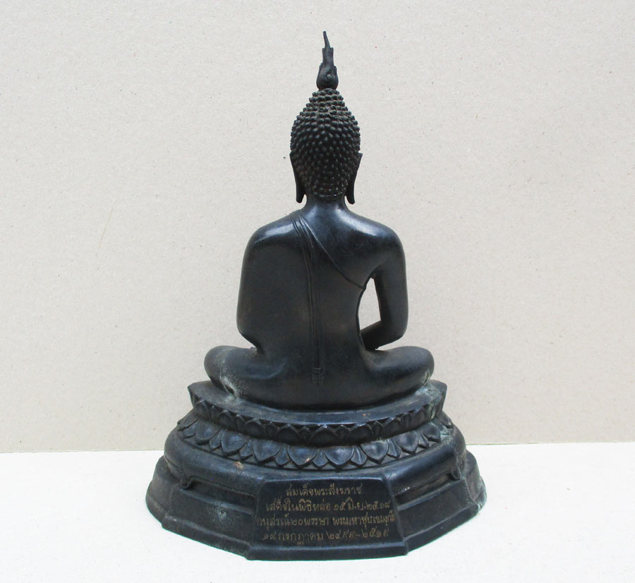 พระบูชาปางสมาธิ อนุสรณ์ 20 พรรษาพระมหาชุม เขมงฺโร วัดธาตุทอง พ.ศ.2519 เนื้อโลหะรมดำมันปูผิวแห้งหิ้ง !! |