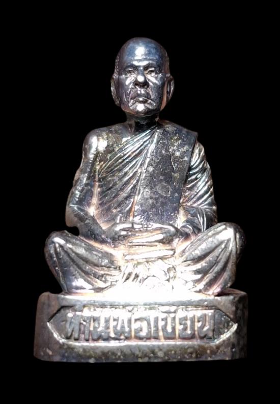 ## รูปหล่อท่านพ่อเขียน(หลวงพ่อเขียน) วัดกระทิง อ.เขาคิชฌกูฏ จ.จันทบุรี เนื้อเงิน พร้อมกล่องเดิม รูปหล่อหนัก 14.53 กรัม