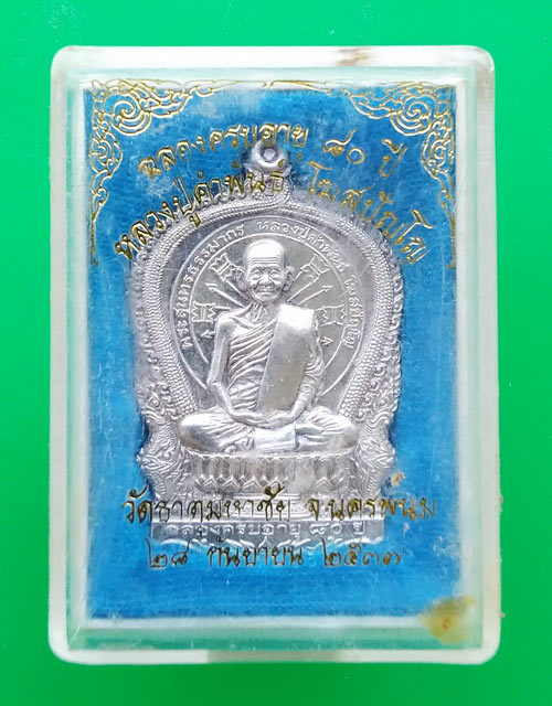 หลวงปู่คำพันธ์ โฆสปัญโญ รุ่นอภิมหาทรัพย์ เนื้อเงิน หมายเลข 2569 + กล่อง
