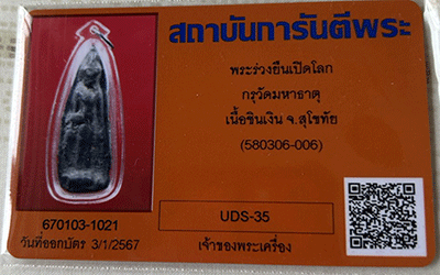 พระร่วงยืนเปิดโลก กรุวัดมหาธาตุ เนื้อชินเงิน สุโขทัย เดิมๆ พร้อมบัตรรับรอง