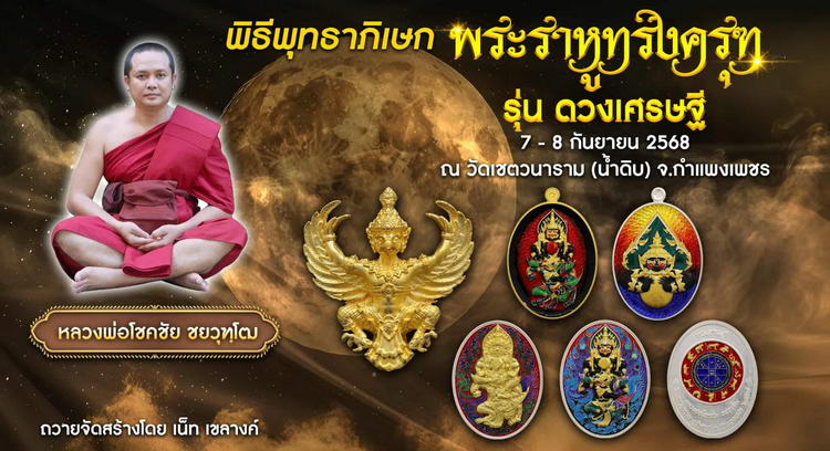 วัดใจ 100 เหรียญพระราหูทรงครุฑ ดวงเศรษฐี หลวงพ่อโชคชัย วัดเชตวนาราม(น้ำดิบ) จ.กำแพงเพชร 2568 ทองแดงผิวไฟ หมายเลข 52 สร้าง 60 กล่องเดิม |