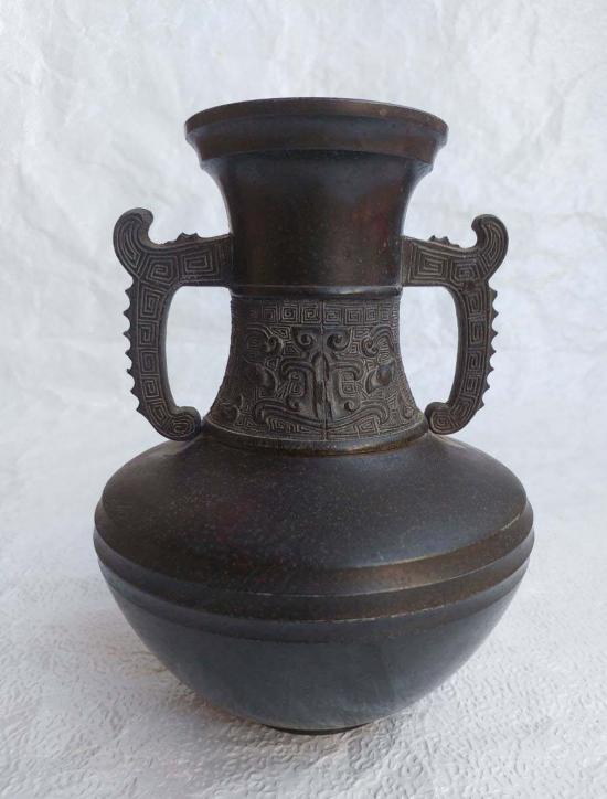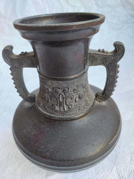 ***วัดใจ***แจกันบรอนซ์โบราณวากุโมะ สไตล์โชวะเรโทร ของญี่ปุ่น สูง 9 นิ้ว น้ำหนักโลกว่า