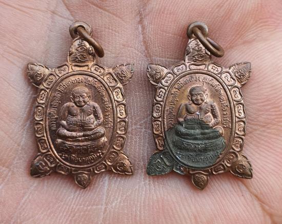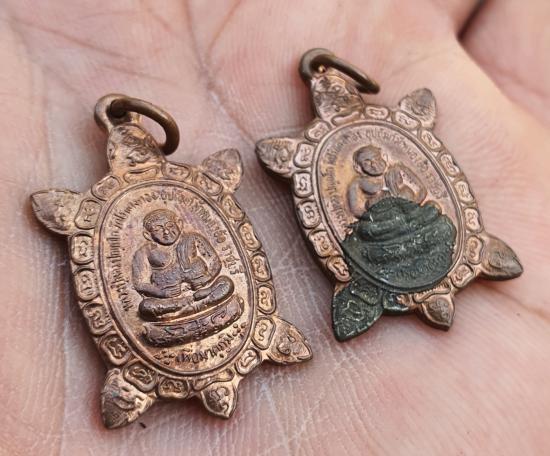 วัดใจเหรียญพญาเต่าเรือน รุ่นเพื่อมาตุภูมิปี41(พิมพ์พระสังกัจจายน์)เนื้อทองแดง หลวงปู่หลิววัดไร่แตงทอง (ออกวัดหนองอ้อ) จำนวน2เหรียญ |