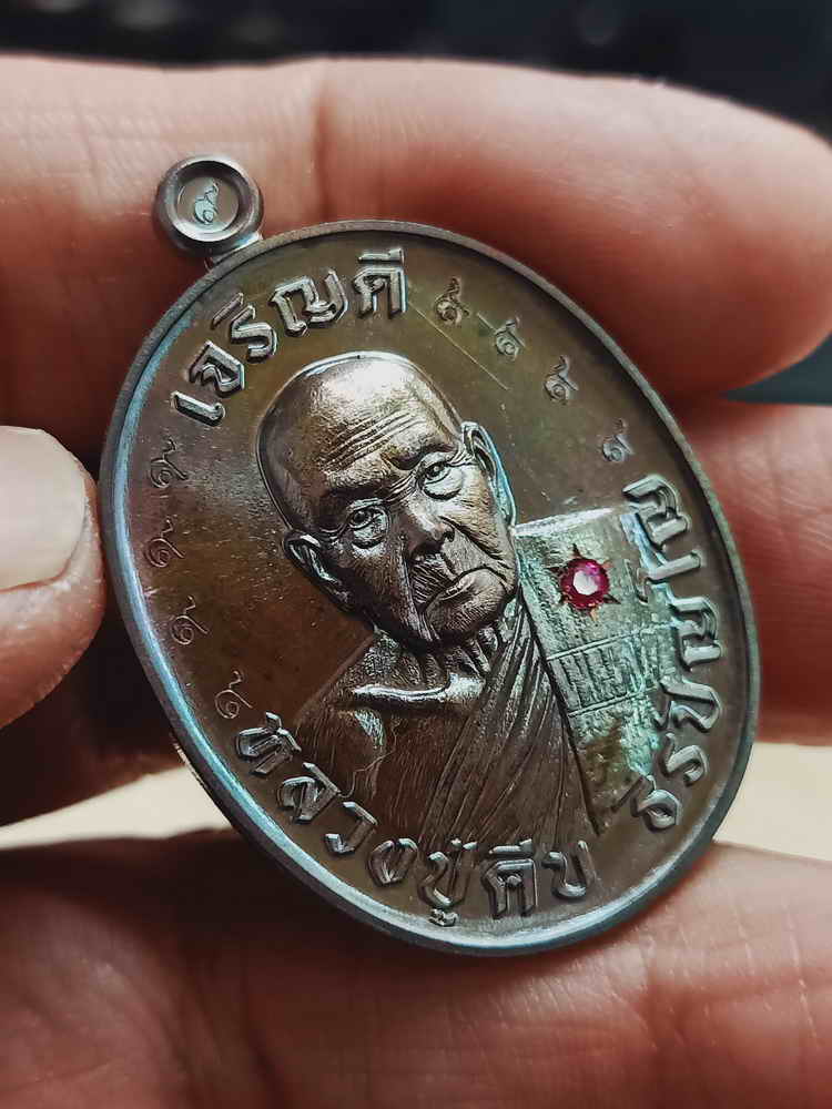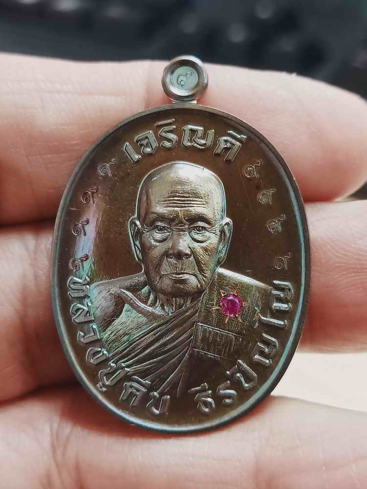 ชื่อพระเครื่อง วัดใจ 100 เหรียญเจริญดี 9 รอบ หลวงปู่คีบ ธีรปัญโญ วัดป่าสุทธาวาส จ.นครพนม 2567 นวะโลหะ ตอก 9 รอบ ฝังพลอย หมายเลข 65 กล่องเดิม