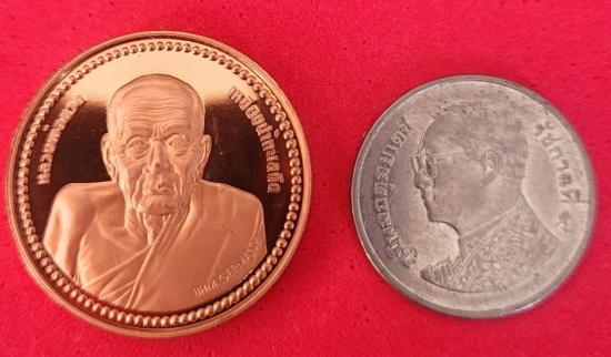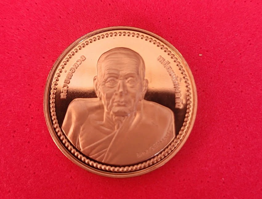 เหรียญหลวงปู่ทวดเหยียบน้ำทะเลจืด วัดช้างไห้ ผลิตที่โรงกษาปณ์เมืองเพิร์ธ เยอรมัน ตอกยันต์และโค๊ดหมายเลขกำกับของเหรียญ ตลับพลาสติกใส เนื้อทองแดงขัดเงา ปี 2537.........(2)