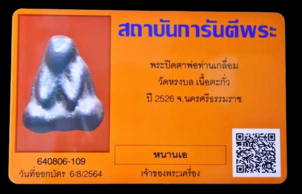 พระปิดตา พ่อท่านเกลื่อม วัดหรงบน จ.นครศรีธรรมราช เนื้อตะกั่ว ปี2526 มีจาร
