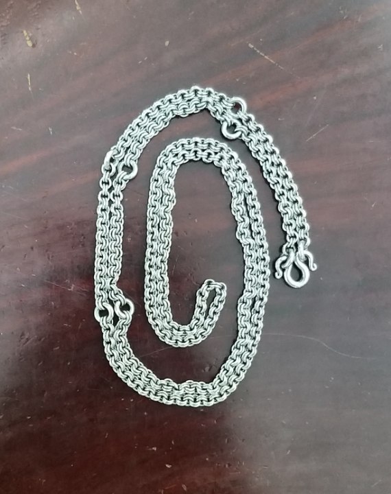 สร้อยห่วงคู่สภาพสวยครับ ความยาวทบแล้ว16นิ้ว ช่วงแขวนพระห่าง2นิ้ว ขนาดสร้อย0.4เซน เส้นเล็กนิยมครับ สร้อยสวยเดิมครับ