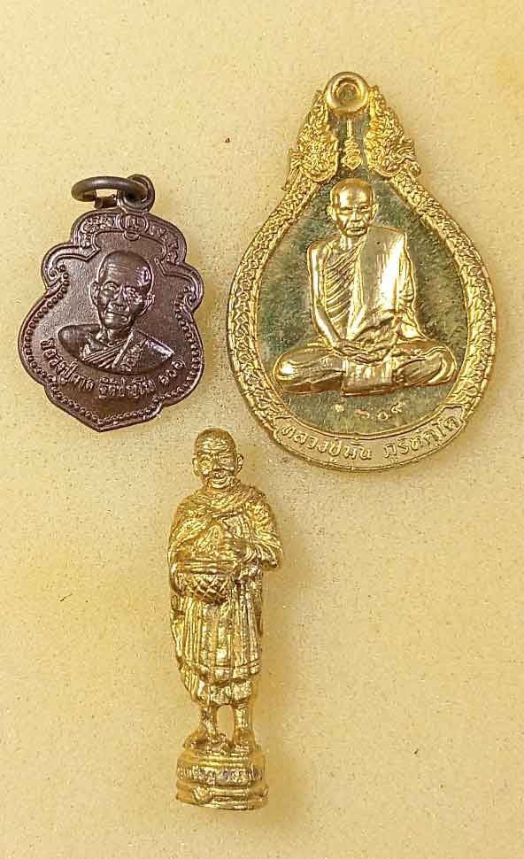 ชุด 3 องค์ ปรกใบมะขาม ดักทรัพย์ -จับลาภ หลวงปู่บุญ วัดแสงน้อย อุบล