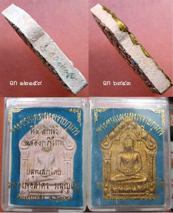 พระขุนแผนผงพรายกุมาร ที่ระลึกพิธีฉลองกุฎิ เนื้อชมพู ปี ๒๕๕๓ ไม่ทาทอง หมายเลข ๑๒๑๕๙ และทาทอง หมายเลข ๖๙๔๓ พร้อมกล่องเดิมๆ