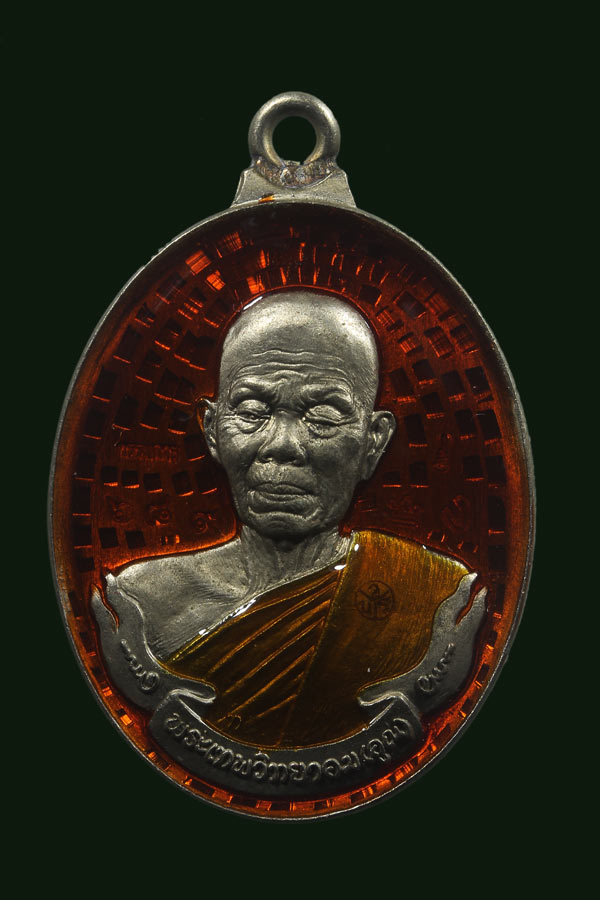 หรียญห่วงเชื่อมรุ่นแรก หลวงพ่อคูณ วัดบ้านไร่ แยกชุดกรรมการ เลข ๔๕๗ เนื้ออัลปาก้าลงยาสีแสด(สีประจำวัน) |