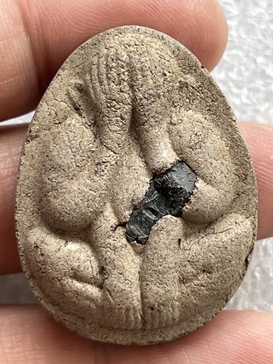 พระปิดตาปิดทวาร เนื้อว่านผสมผง ฝั่งแร่ หลังยันต์ ไม่ทราบที่