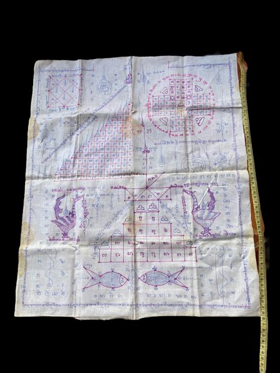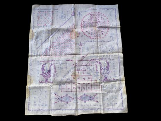 P594 ผ้ายันต์เก่า ลายยันต์โบราณ ไม่ทราบที่ (ประมูลสั้น ไม่ยืดเกม) |