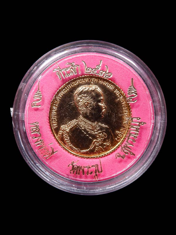 เหรียญรัชกาลที่ 5 พระบาทสมเด็จพระจุลจอมเกล้าเจ้าอยู่หัว ไปมาใกล้ไกล ปลอดภัยทั่วทิศ หลวงพ่อดี วัดพระรูป จ.สุพรรณบรี ปี 2536 เนื้อกะไหล่ทอง