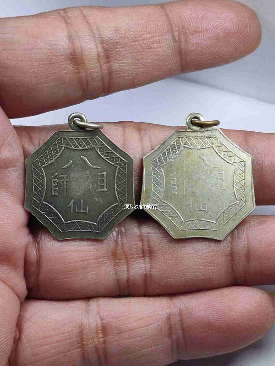 *ที่ฆ้อนมีอีกเยอะครับ เคาะเดียว* เหรียญโป๊ยข่วยป้ายชื่อองค์เทพเจ้า "โป๊ยเซียนโจ้วซือ" เทพเจ้า 8 เซียน ห่วงเชื่อม สวยเดิมทั้งคู่ เหรียญยุคต้นปี 2500 ครับ |