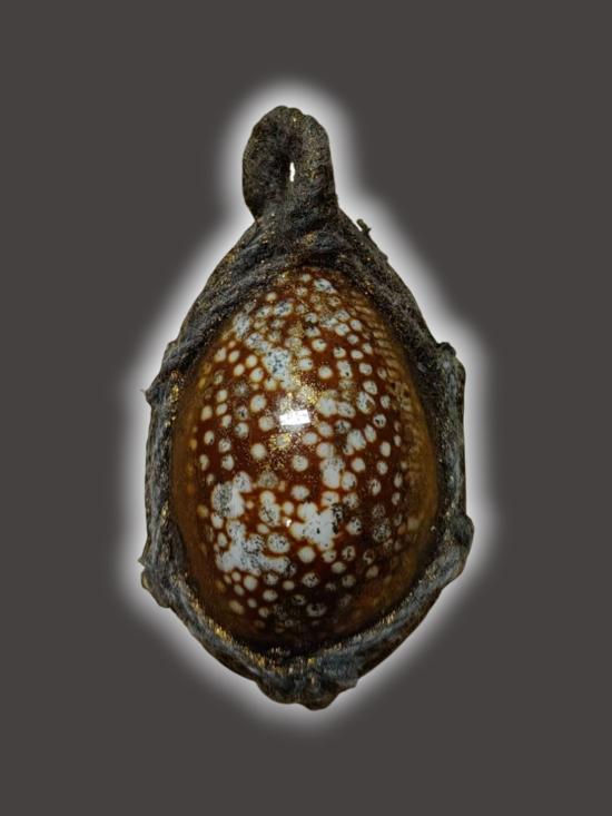 T115-เบี้ยแก้ถักเชือกหลังตะกรุด ไม่ทราบที่