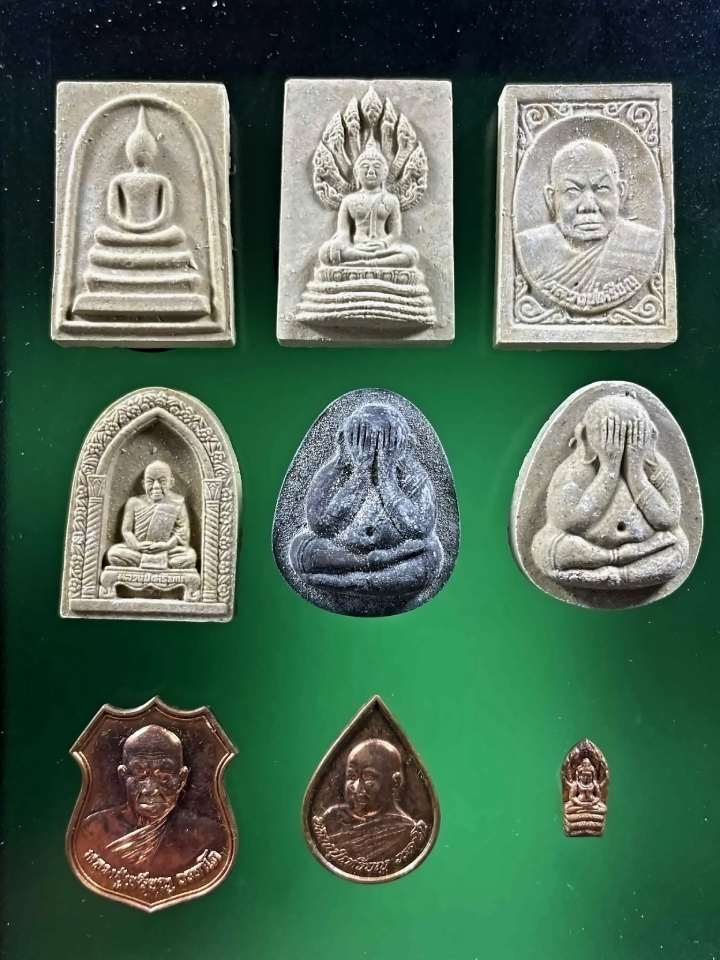 8 พระชุดของขวัญ 9 องค์ หลวงปู่เหรียญ วรลาโภ รุ่นศรัทธาบารมี วัดอรัญญบรรพต จังหวัดหนองคาย ปี 39 กล่องเดิมแท้