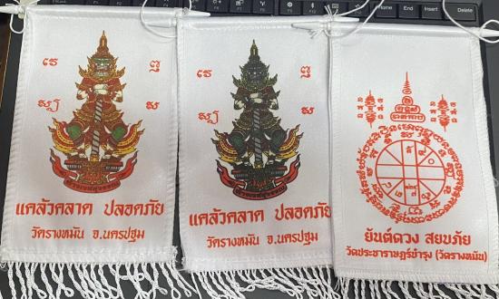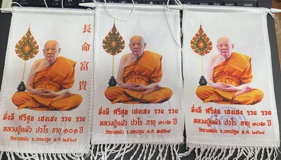 หลวงปู่แผ้ว ปวโร พระปิดตา เเละ ธงเเขวนหน้ารถ |