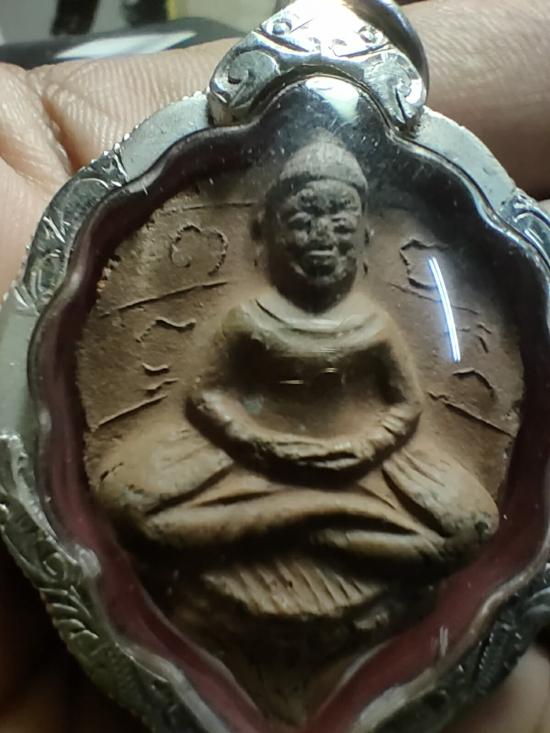 พระโพธิจักร(พิมพ์ใบโพธิ์) หลวงพ่อลี วัดอโศการาม ปี2500 สมุทรปราการ เลี่ยมเงิน กระเทาะจุกหลัง