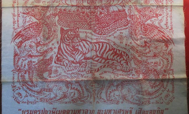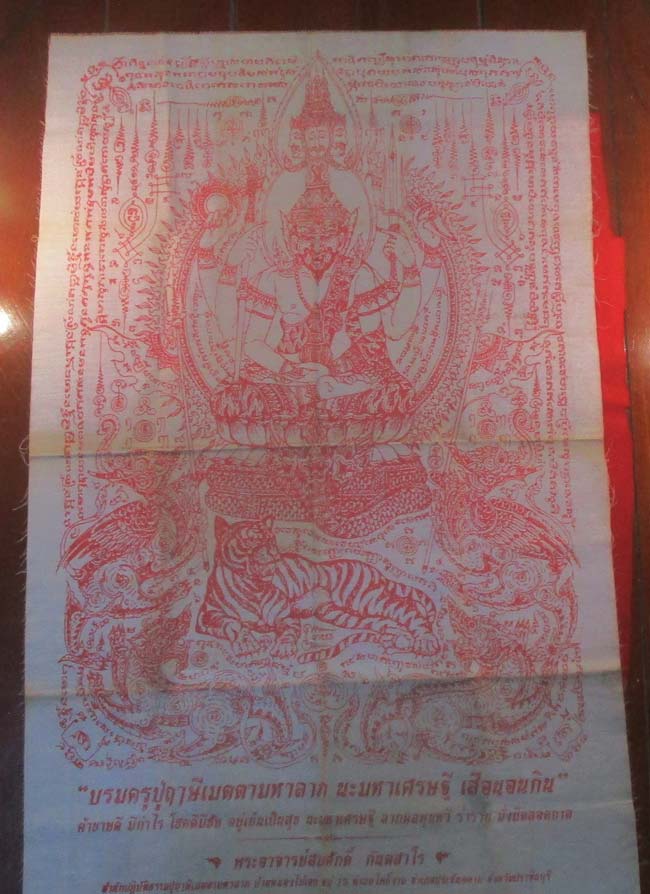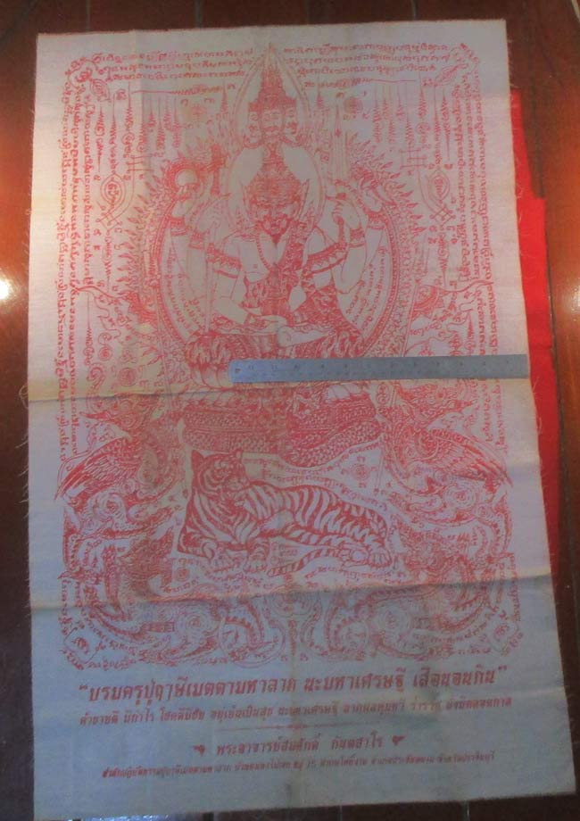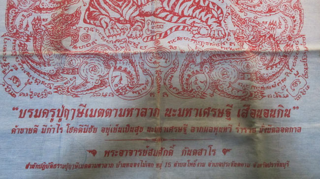 ผ้ายันต์ บรมครูปู่ฤาษีเมตตามหาลาภ นะมหาเศรษฐี เสือนอนกิน พระอาจารย์สมศักดิ์ กันตสาโร จ.ปราจีนบุรี ครับ (พระบ้าน ครับ)