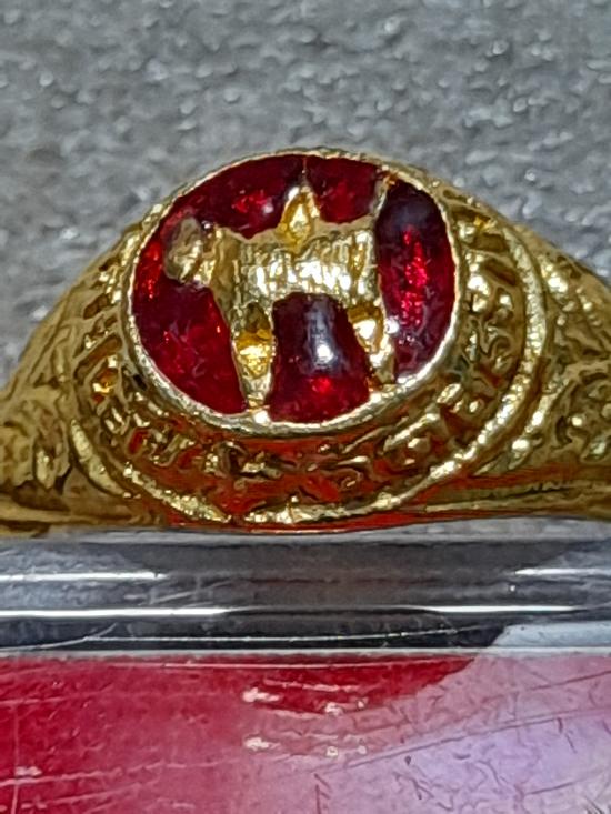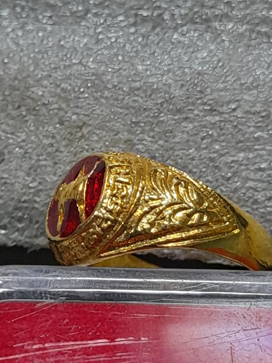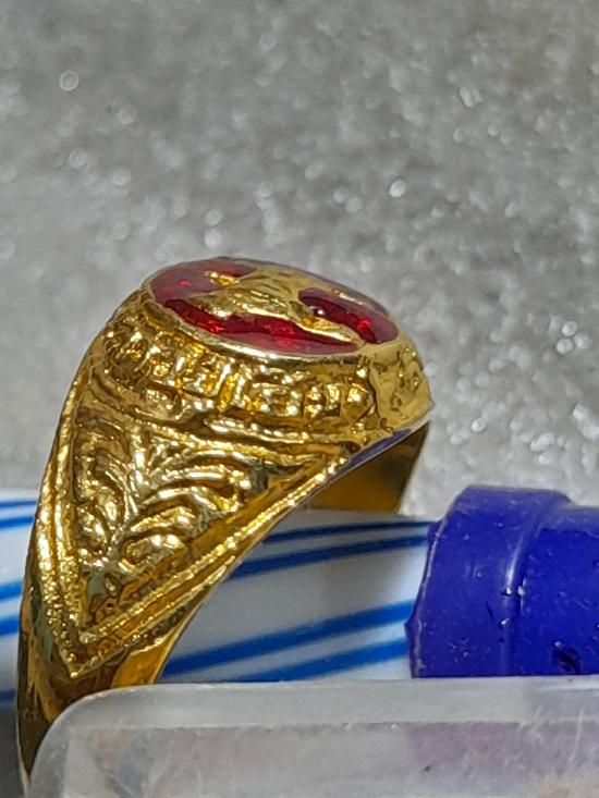 วัดใจเคาะเดียว.............แหวนผู้หญิง กะไหล่ทองลงยาสีแดง หลวงปู่เย็น ทานรโต วัดการเปรียญ วัดสระเปรียญ สวยๆ หายาก