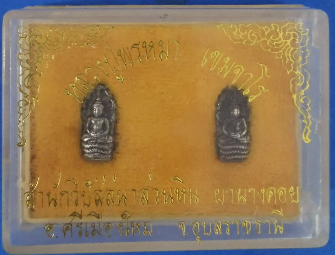 ปรกใบมะขาม เนื้อเงิน หลวงปู่พรหมา วัดสวนหิน อุบลราชธานี กล่องคู่เดิม