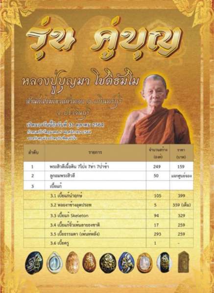 พระสีวลีคู่บุญ เนื้อผงพรายกุมารผสม ดิน 7 โป่ง 7 ท่า 7 ป่าช้า หลวงปู่บุญมา โชติธมฺโม สำนักสงฆ์เขาแก้วทอง จ.ปราจีนบุรี (มวลสารเก่าขุนแผนพรายคำหยาด) จัดสร้างน้อยเพียง 249 องค์