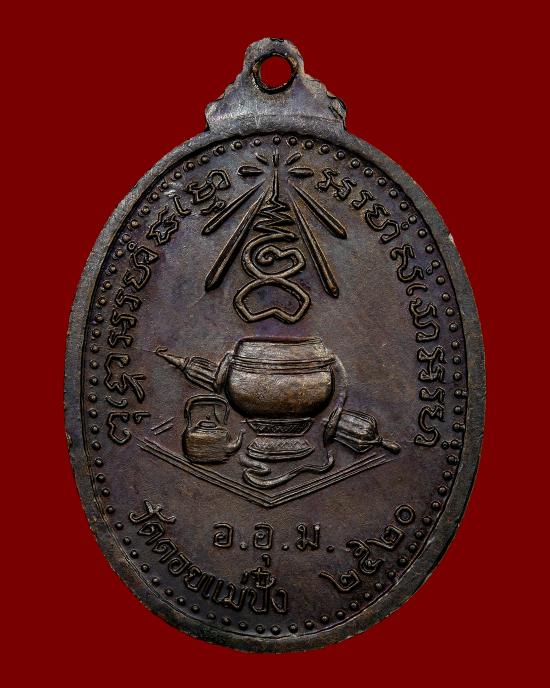 เหรียญหลวงปู่แหวน สุจิณฺโณ รุ่น หลังอัฐบริขาร อ.อุ.ม. วัดดอยแม่ปั๋ง พ.ศ. 2520 |