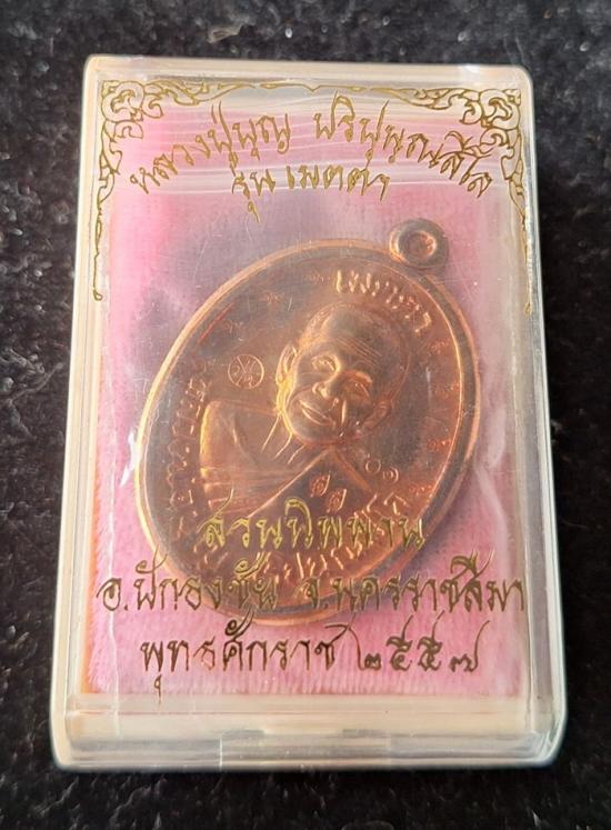 วัดใจ หลวงปู่บุญ วัดปอแดง รุ่นเมตตา ตอก9รอบ เนื้อทองแดงหลังแบบ No.2019