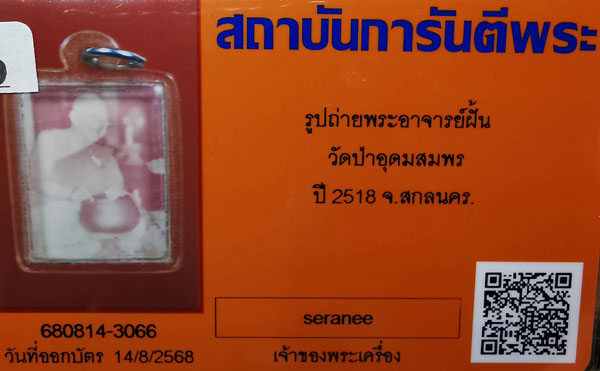 รูปถ่ายพระอาจารย์ฝั้น วัดป่าอุดมสมพร ปี2518 จ.สกลนคร + บัตรG-pra สภาพเดิมค่ะ สภาพตามรูปทุกประการค่ะ