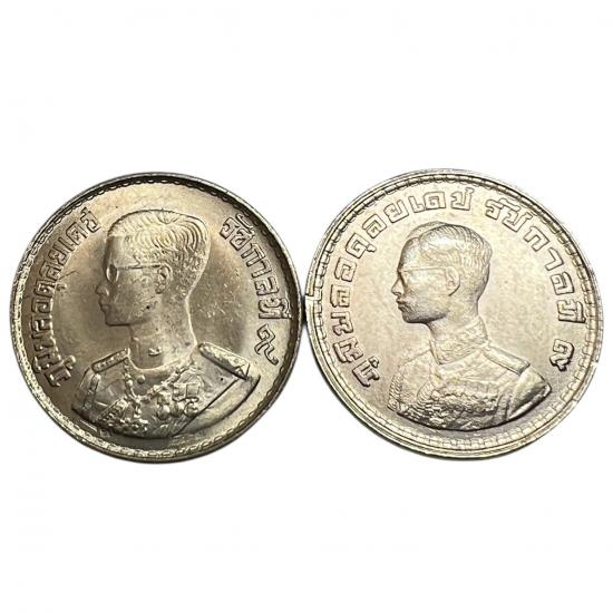 ชื่อพระเครื่อง 2เหรียญ!! 1 บาท ตราแผ่นดิน 2500 นิเกิล แก่เงิน 1 บาท ตราแผ่นดิน 2505 *ไม่ผ่านใช้*