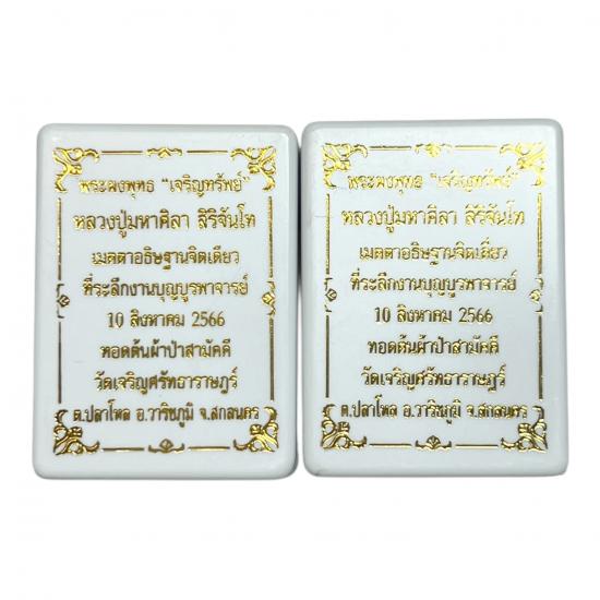 2องค์!! พระผงพุทธ***"เจริญทรัพย์" หลวงปู่มหาศิลา สิริจันโท เนื้อว่านม้าขาวปิดแผ่นทองคำเปลวฝังพลอยจิ๋วในด้านหน้าหลังคลุกผงจีวร สร้างเพียง 3000 องค์