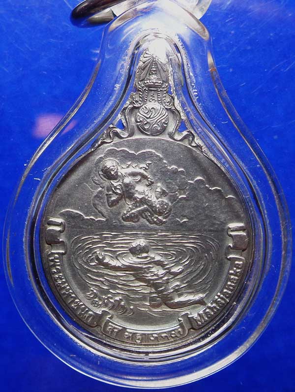 ชื่อพระเครื่อง เหรียญพระมหาชนก พิมพ์เล็ก เนื้อเงิน ปี 2542 ผิวกระจกเลี่ยมพลาสติกกันผิว พร้อมใช้