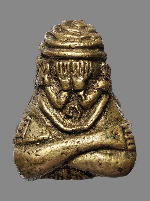 พระปิดตายันต์ยุ่ง รุ่นแรก หลวงพ่อรุ่ง วัดท่ากระบือ ปี 2485 เนื้อทองเหลือง พิมพ์ใหญ่ จ.สมุทรสาคร มาพร้อมบัตร G pra ...