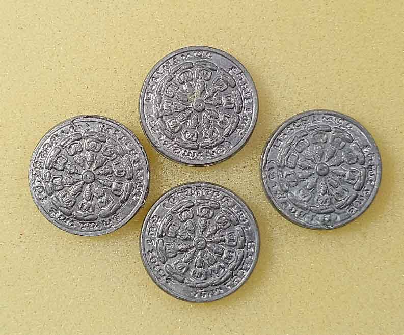 เหรียญงบน้ำอ้อย เนื้อชินตะกั่ว วัดพรสวรรค์ ( เขาซ่อนหม้อ ) จ.สุพรรณบุรี 4 เหรียญ
