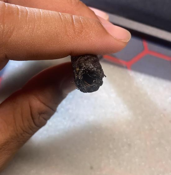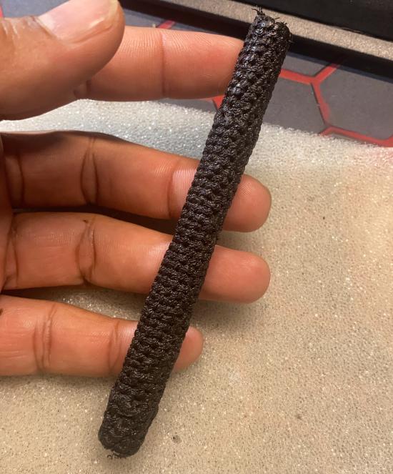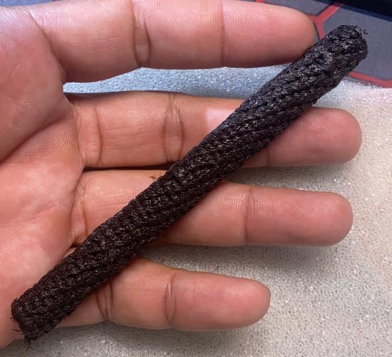 ตระกรุดถักเชือกดำเก่า ไม่ทราบที่ ยาวขนาด 5 นิ้ว