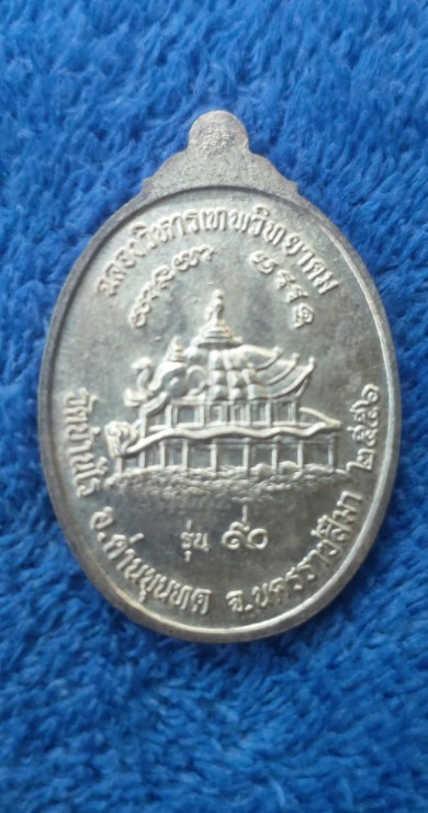 เหรียญฉลองวิหารเทพ หลวงพ่อคูณ วัดบ้านไร่ เนื้อเงินลงยา เลข 827 เคาะเดียว