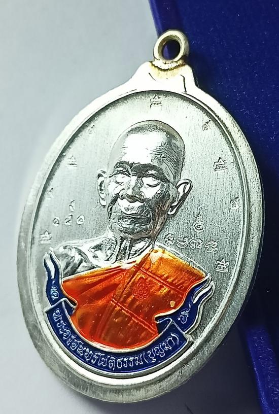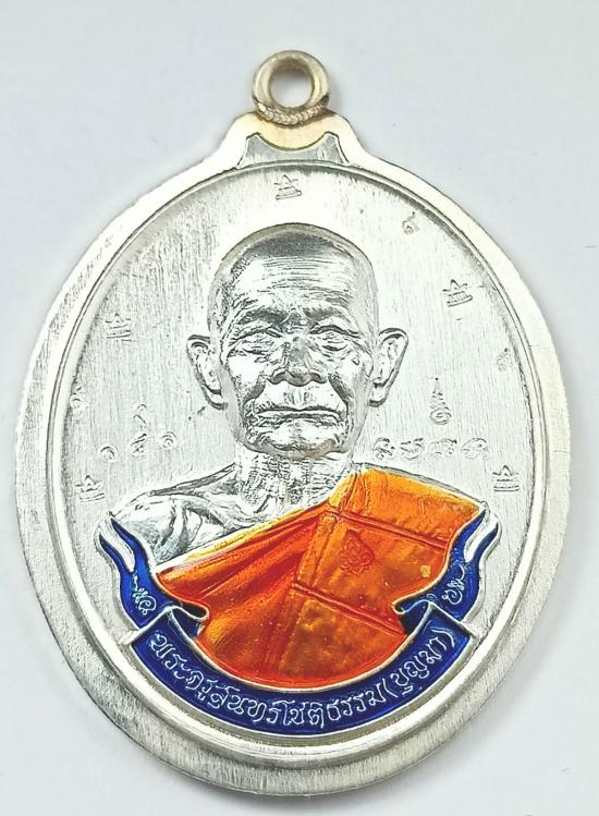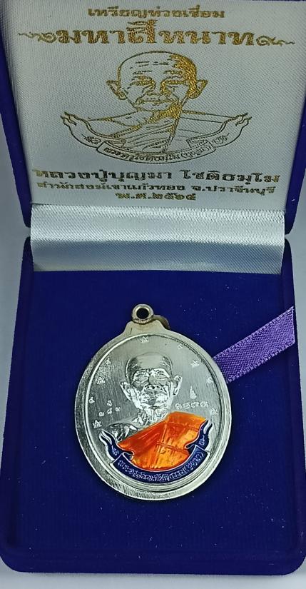 เหรียญห่วงเชื่อม "มหาสีหนาท" หลวงปู่บุญมา โชติธัมโม เนื้อเงินลงยาจีวร/โบว์ ไม่ตัดปีก ตอก9รอบ เบอร์ 181 พร้อมกล่องเดิมครับ (น้ำหนักเหรียญ 21.06 กรัม)