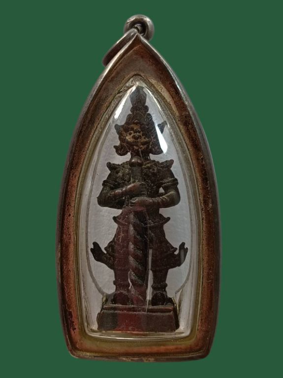 รูปหล่อท้าวเวสสุวรรณพิมพ์สองหน้า หน้ายักษ์ กับ หน้าเทพ เลี่ยมเงิน ไม่รู้ที่