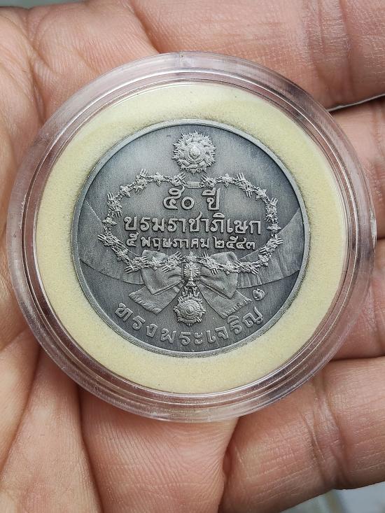 รายละเอียด เหรียญที่ระลึก 50 ปี บรมราชาภิเษก ปี 2543 เนื้อเงินรมดำพ่นทรายพิเศษ