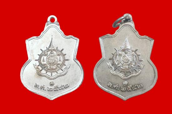 เหรียญที่ระลึกในหลวงรัชกาลที่ 9 พระชนมายุ 6 รอบ 72 พรรษา ปี 2542 เนื้ออัลปาก้า เป็นเหรียญทรง อาร์มที่จัดสร้างโดยกระทรวงมหาดไทย พิธีพุทธาภิเษกจัดขึ้นที่วัดพระศรีรัตนศาสดาราม (วัด พระแก้ว) เนื้อเหรียญใ |